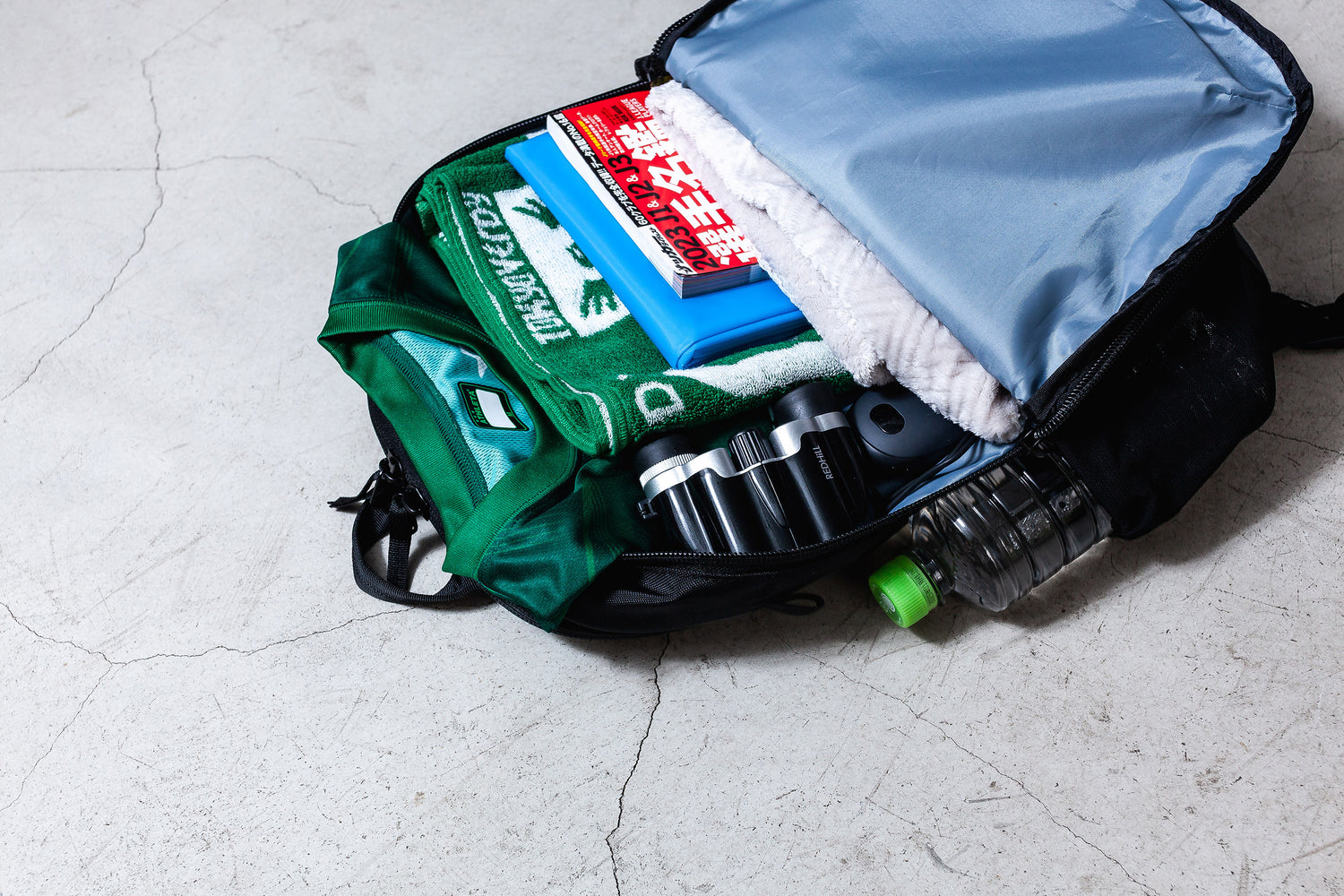 だけれど、嵩張る荷物が多くなる冬の観戦や、雨の中の観戦、お気に入りのチーム・選手のグッズを余裕を持って持ち運べる大容量にも拘っています。