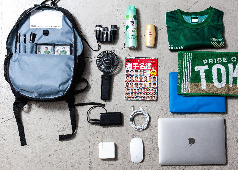 スポーツ観戦するための道具が収納可能。加えて、取り外し可能なシートクッションや座席下への収納できるサイズ感など、これまでにはないスポーツ観戦に最適化されたバッグ。観戦グッズに加え仕事道具まで収納できる設計は、仕事終わりのスポーツ観戦もロッカーを使わずダイレクトにスタジアムに直行できる。