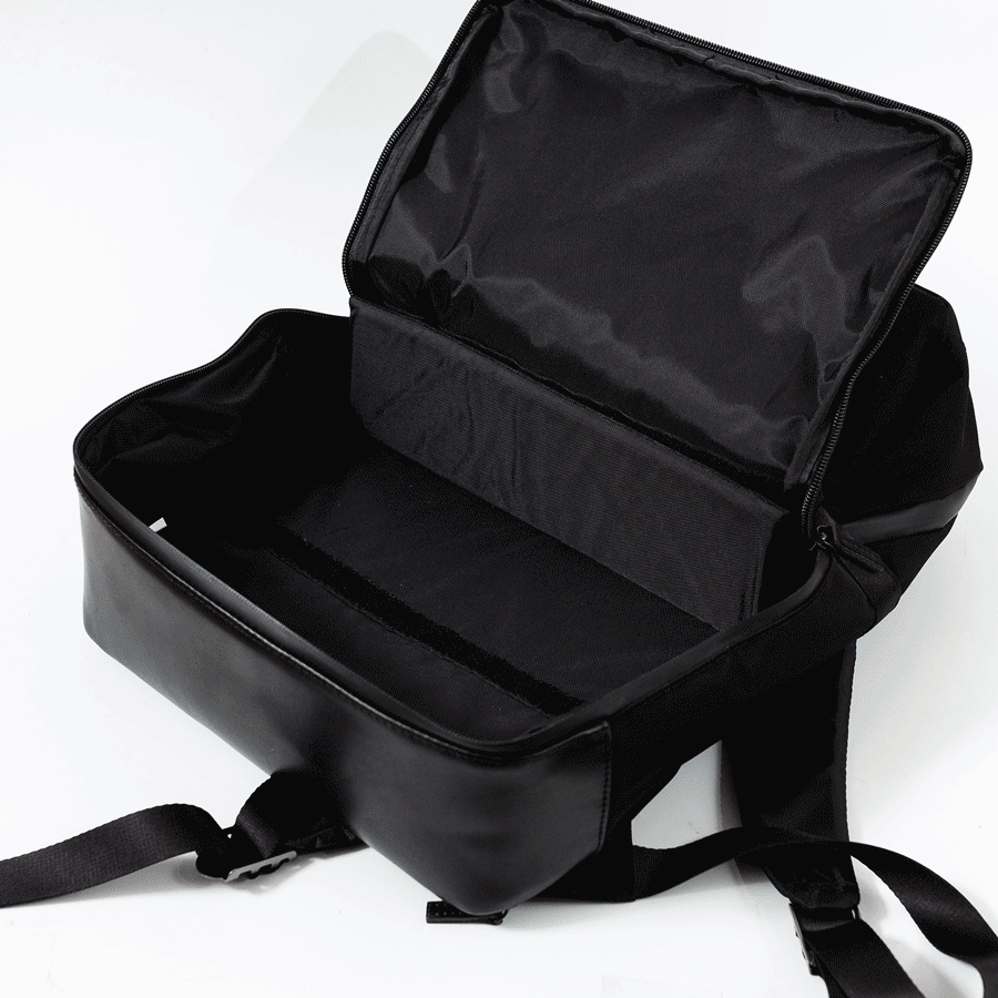 メインコンパートメントの中にある間仕切りは、面ファスナーによって1室と上下2室に使い分けることが出来ます。そうすることによって、収納物を住み分けることができます。取り出し口も上下にあるので問題ありません。
