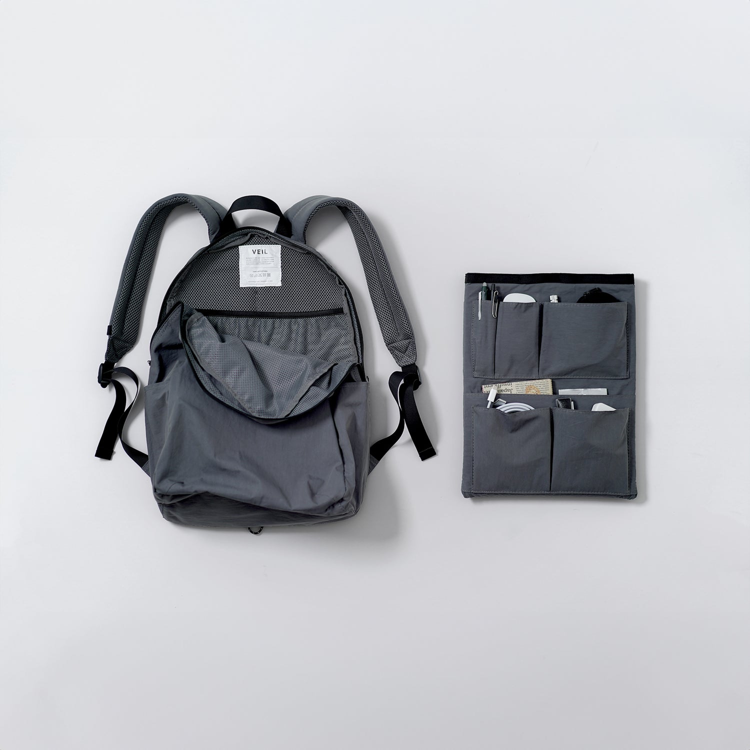 「洗えるバッグ」として開発された、小物類を集約するインナーバッグと、それを収納するアウターがワンセットとなっているVEIL。