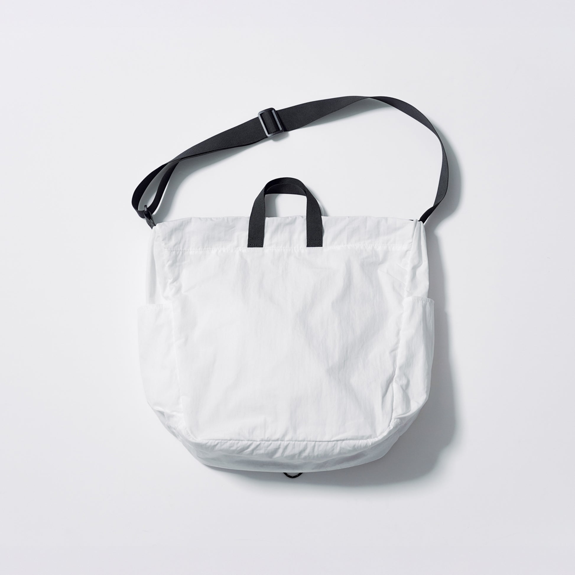 両サイドにはマチ付きポケットを配置し、さらに左右に取り付けたドローコードループには、カラビナやポーチ、イヤホンケースなどを自由に取り付けてカスタマイズが可能。