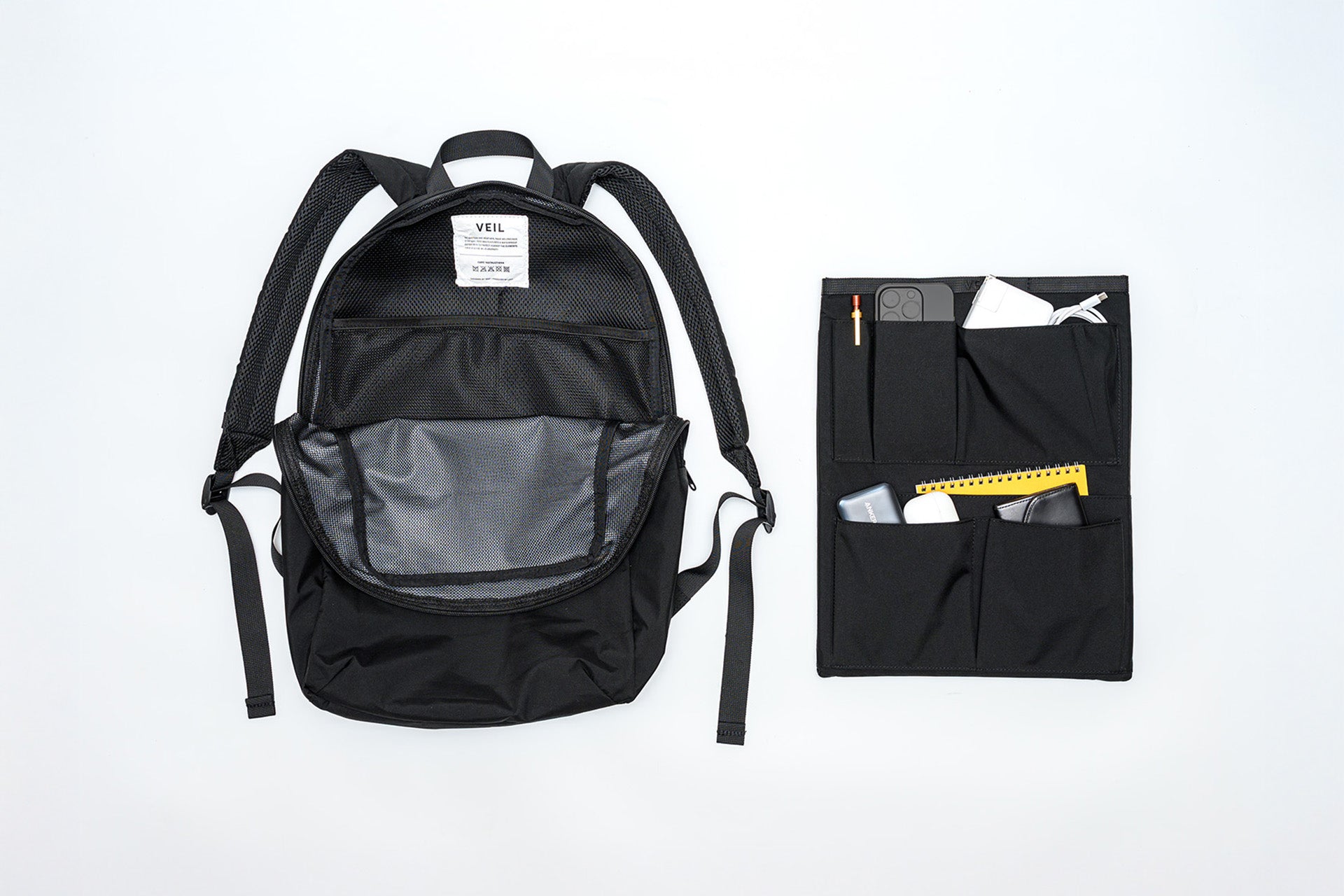 VEILは第一弾としてリュックタイプが発売されました。コアコンセプトである「コア&スキン」というセパレート式のバッグ構造と、「バッグを洗う」というこれまで着目されなかったアイデアがすべて盛り込まれたモデルです。